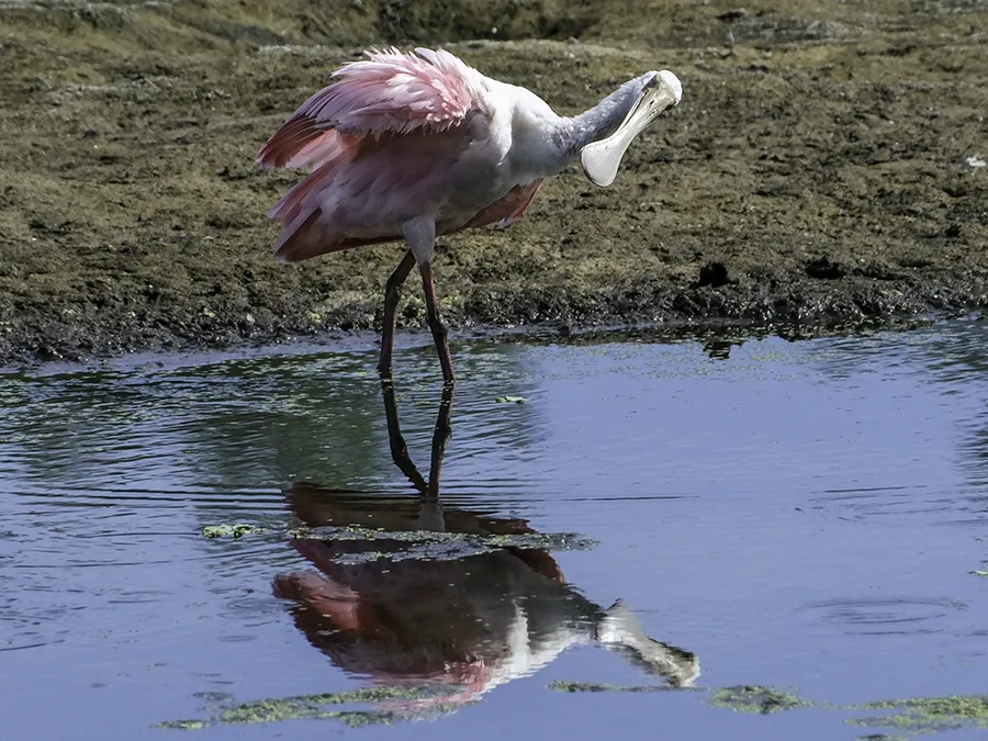 A Woodstork looks like a water-guzzling boxer. But drinking water when friends are watching makes Woody Woodstork take a different approach.